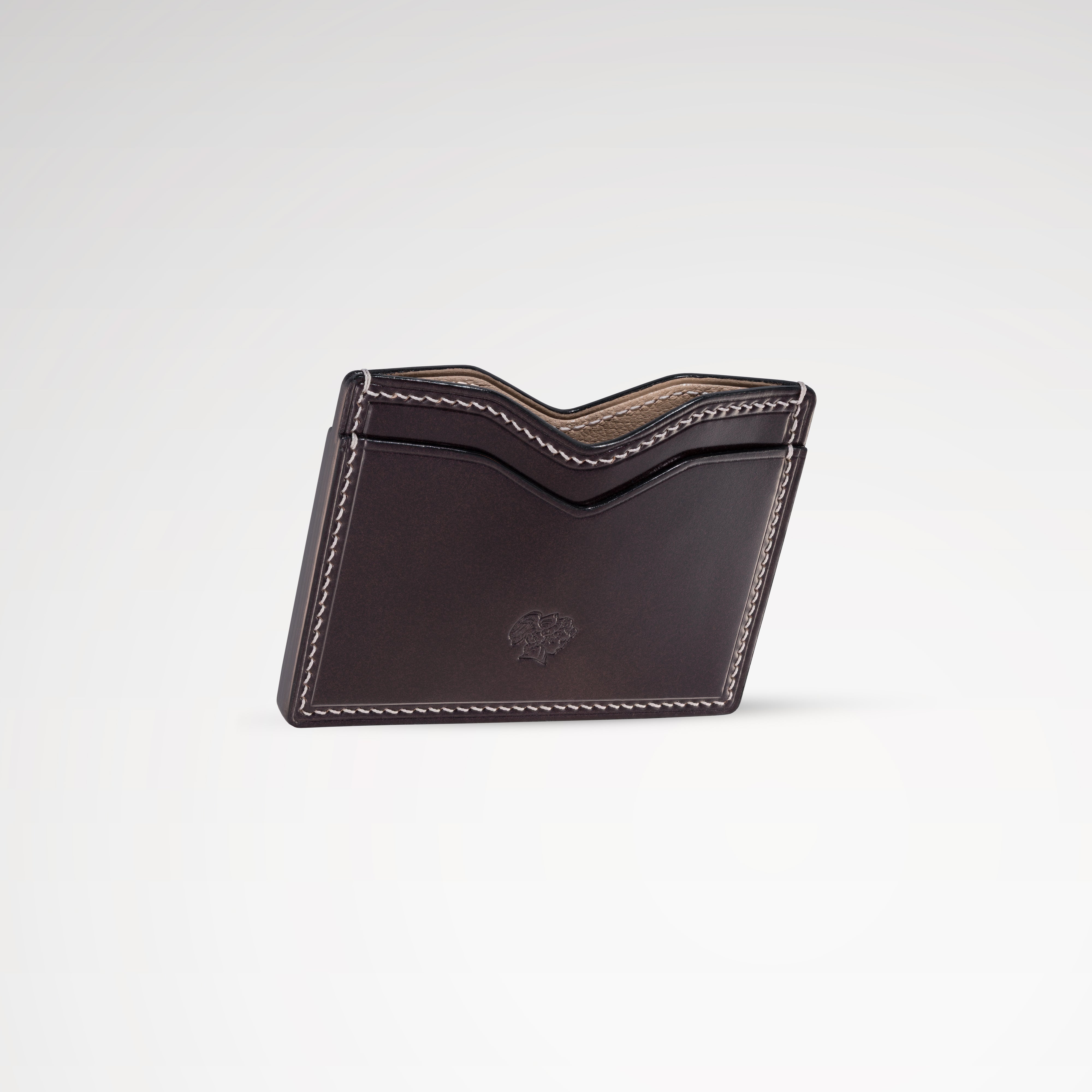 Crafted from Shell Cordovan and lined in full-grain French goatskin, each pocket is individually reinforced for a precise twelve-layer build. The piece is hand-stitched with linen thread using the saddle stitch.